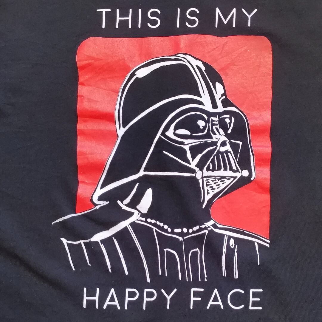 【Lサイズ】STAR WARS ダース・ベイダー パロディTシャツ THIS IS MY HAPPY FACE 黒 ユニセックス 映画 スターウォーズ 半袖 プリントT【古着】