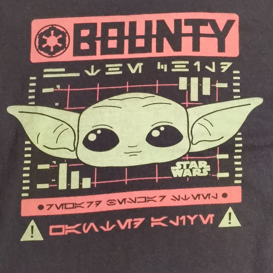 Funko社が展開するPOP!(ポップ!)シリーズとのコラボデザインで、フロントには大きくグローグーの顔と“BOUNTY”のロゴ、そして劇中の惑星アウレベッシュ文字風のグラフィックがあしらわれています。ファンにはたまらない1枚!