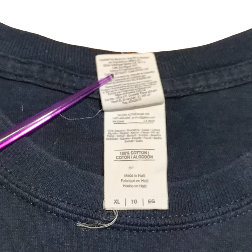 スターウォーズとアメリカの名門校「オハイオ州立大学(Ohio State University)」のフットボールチーム「バックアイズ(Buckeyes)」の貴重なコラボTシャツ。名言“May the Force Be With You(フォースと共にあらんことを)”をパロディ化した “May the Buckeyes Be With You” のメッセージがインパクト抜群で、デス・スターやXウィングが大胆にプリントされたスターウォーズファン必見の一枚です。ボディはGILDAN(ギルダン)のヘビーコットンで、しっかりとした厚みと耐久性のある着心地が特徴。XLサイズのゆったりシルエットで今っぽく着られ、男女問わずユニセックスで着用可能です。コットン100%、MADE IN HAITI製で、タグ付きのオリジナル。スターウォーズ公式ライセンス表記も確認済みです。古着ならではの若干の使用感や毛羽立ちはありますが、目立った汚れやダメージは見受けられず、全体的に良コンディションです。USA古着、映画T、大学系Tシャツ、キャラT好きの方にもおすすめ。ビッグサイズTをお探しの方にもぴったりの1着です。1点モノのため、気になる方はお早めにどうぞ!
