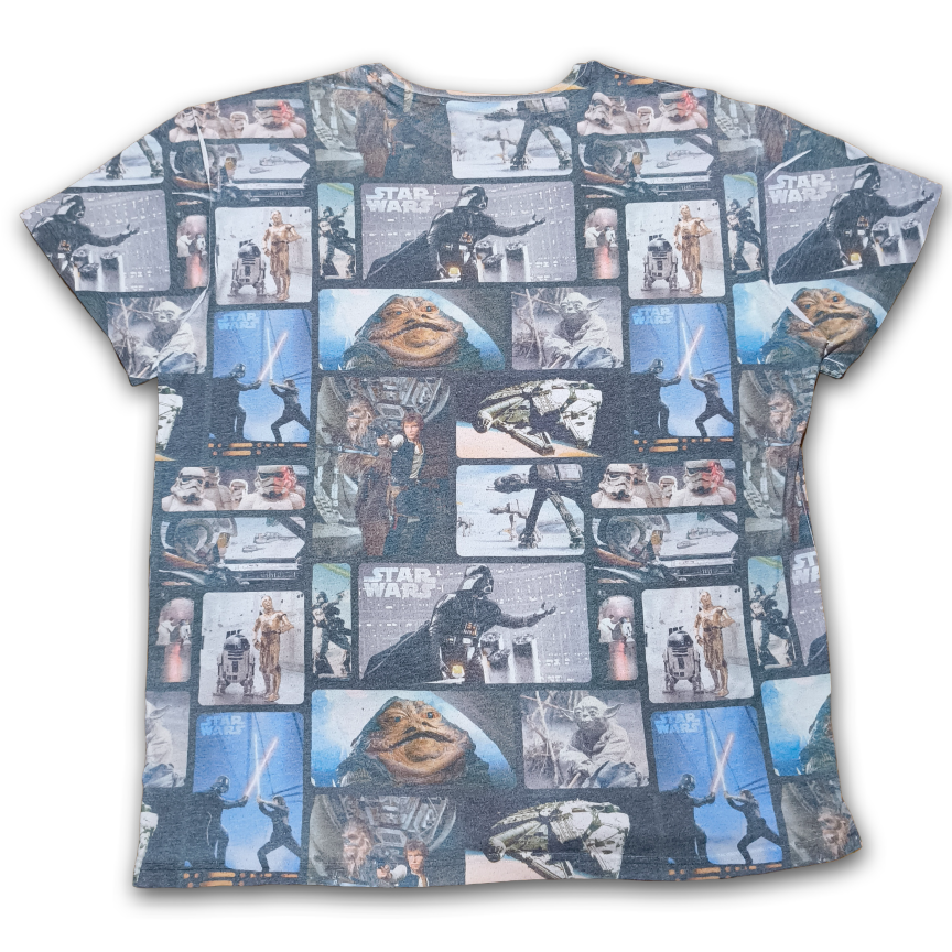 【XL】STAR WARS スターウォーズ 総柄 Tシャツ ダースベイダー ルーク ヨーダ ハンソロ ジャバ アメコミ調【古着】25023