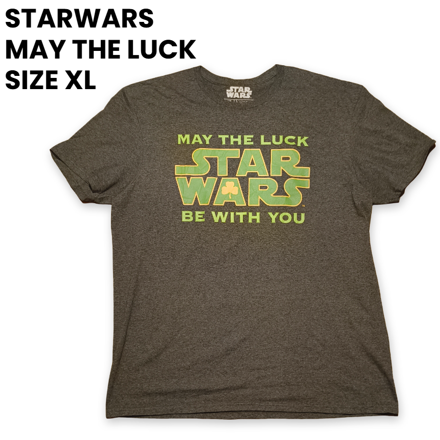 【XL】STAR WARS スターウォーズ MAY THE LUCK グレーボディ クローバー 緑ロゴ Tシャツ【古着】25041