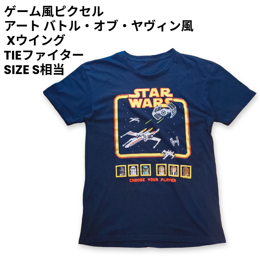 【S~M相当】STAR WARS スターウォーズ ゲーム風ピクセルアート バトル・オブ・ヤヴィン風 Xウイング TIEファイター Tシャツ【古着】