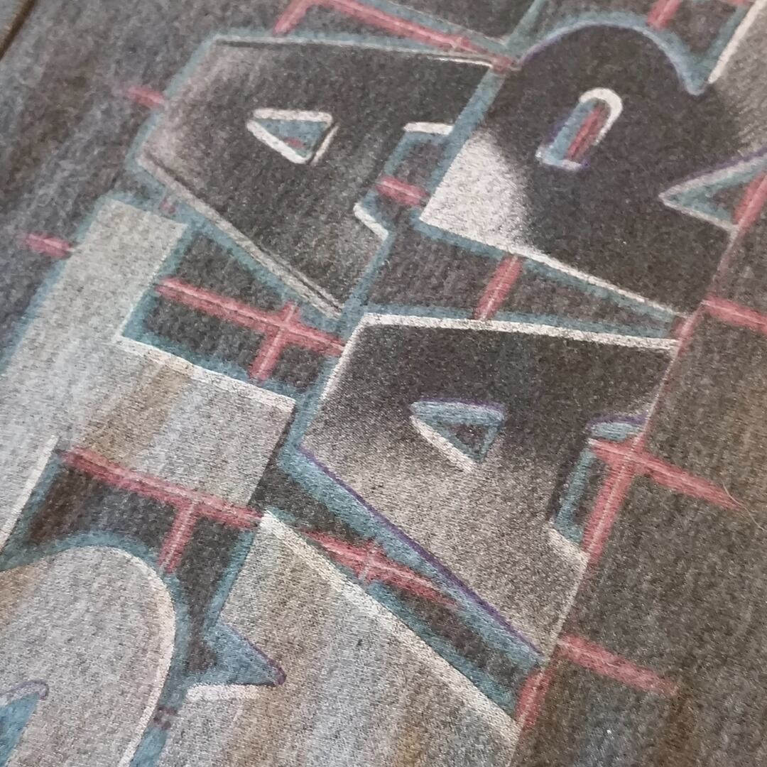スターウォーズ公式ライセンスのグラフィックTシャツです。ロゴには立体感あるシルバープリントに加え、赤いグリッドのようなデザインが重なった独特な仕上がり。使い込まれたようなディストレスト(かすれ)加工がヴィンテージ感を演出しています。カラーは合わせやすいダークヘザーチャコール(杢グレー)で、インナーにも1枚でも映える万能カラー。映画の中でも高い人気を誇る“旧ロゴ”デザインなので、スターウォーズファンはもちろん、古着好きにもオススメです。メンズM相当ですが、ユニセックスで着用可能。
