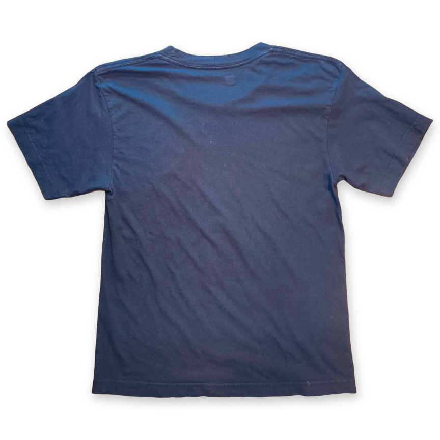 LEGO × STAR WARS(レゴ × スターウォーズ)のコラボTシャツです。フロントにはレゴ仕様のキャラクターたちがサークルアート風に配置され、中央にはレッドライトセーバーを構えたダースベイダーが大きくプリントされたインパクト抜群のデザイン。周囲にはヨーダ、R2-D2、チューバッカ、C-3PO、ボバ・フェット、ルーク・スカイウォーカー、レッド5など、おなじみの面々が揃い踏み。黒地にカラフルなプリントが映えるグラフィックは、スターウォーズファンならずとも目を引くアイテムです。タグ表記はキッズサイズですが、細身体型の女性や小柄な方であれば着用も可能。目立つダメージや汚れはなく、まだまだ着用いただけるコンディションです。