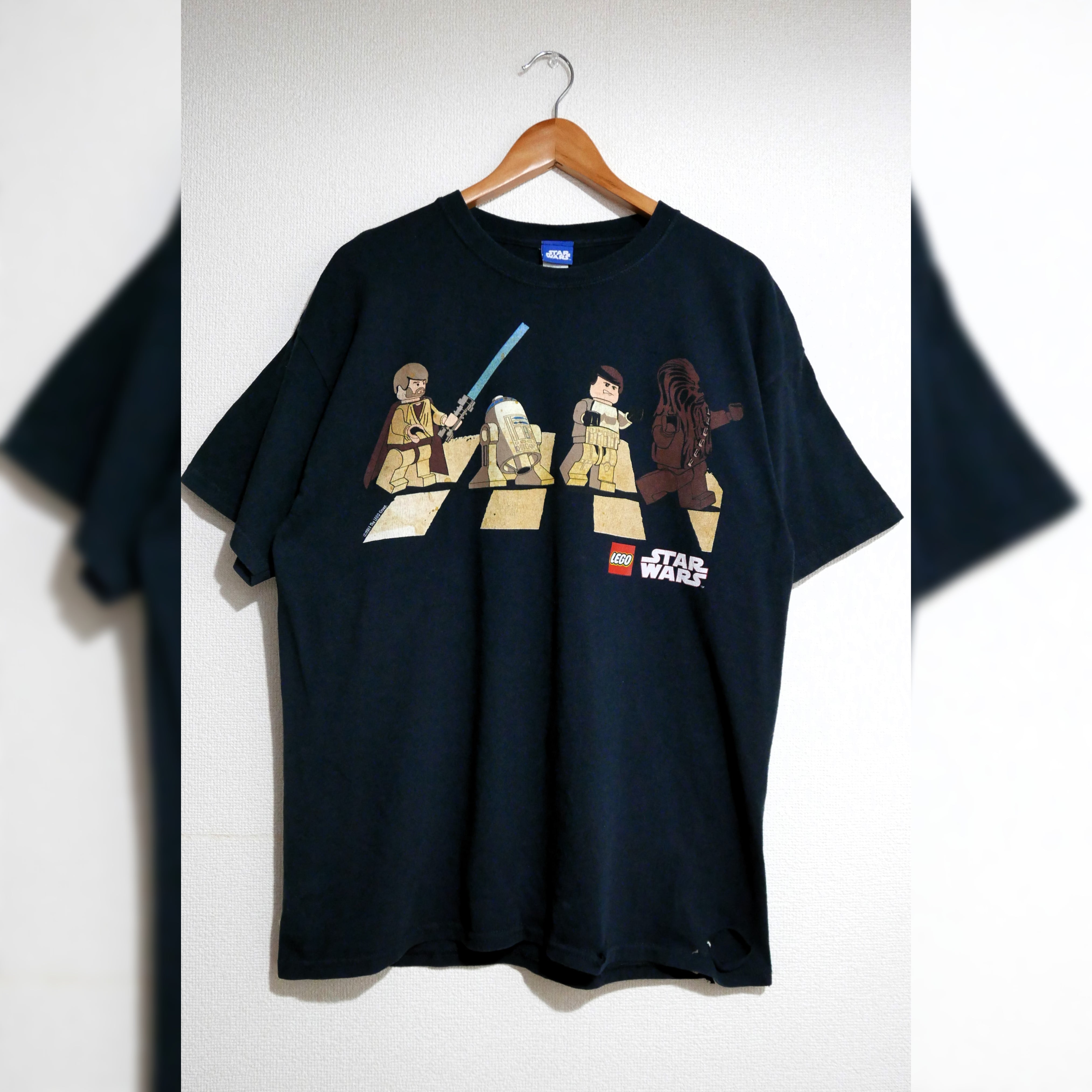 【L】スターウォーズレゴ ダブルネーム ルーク オビワン チューバッカ R2-D2 ダメージ有 スターウォーズタグ ボックスシルエット Star Wars Lego Luke Obi-Wan Chewbacca【古着】
