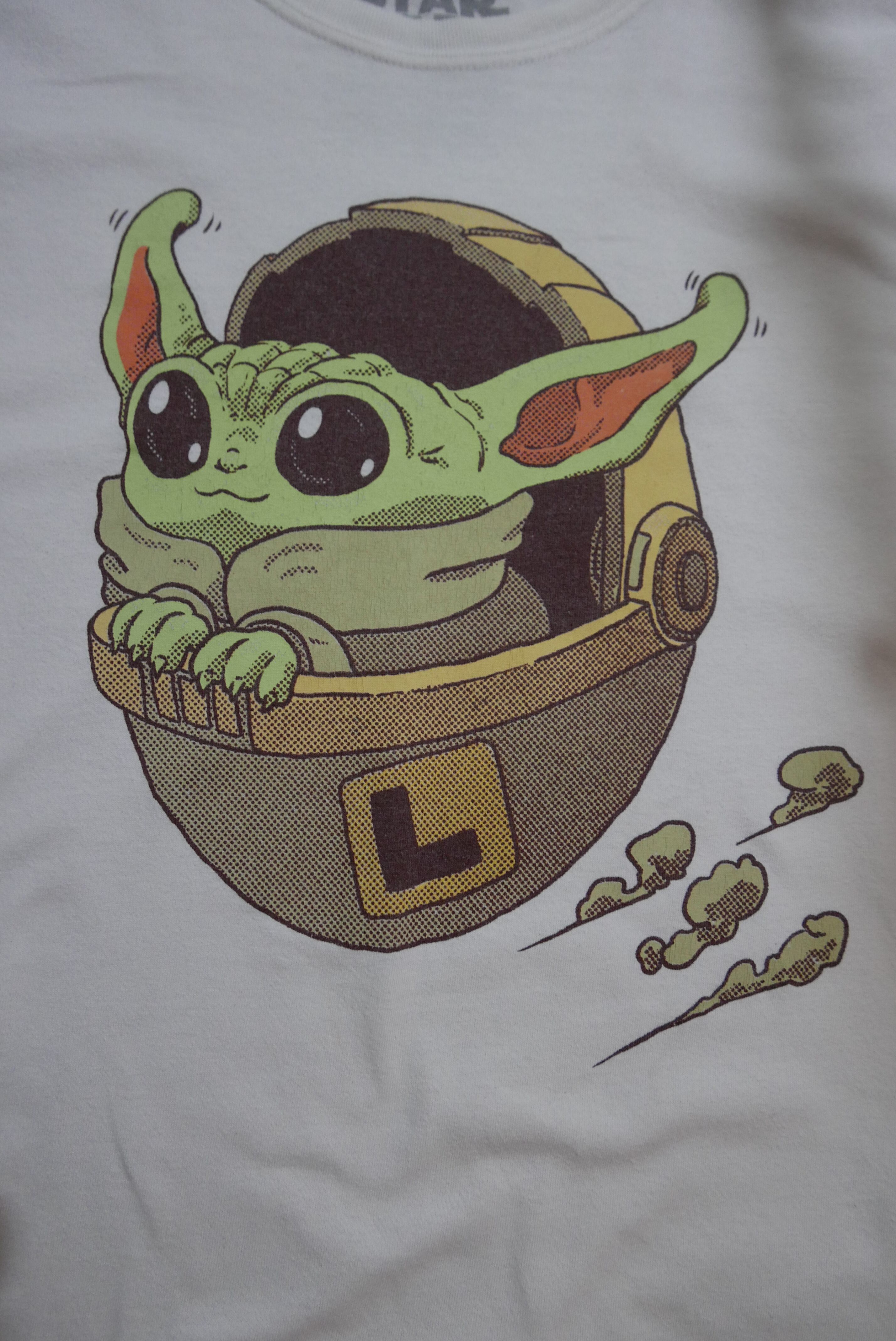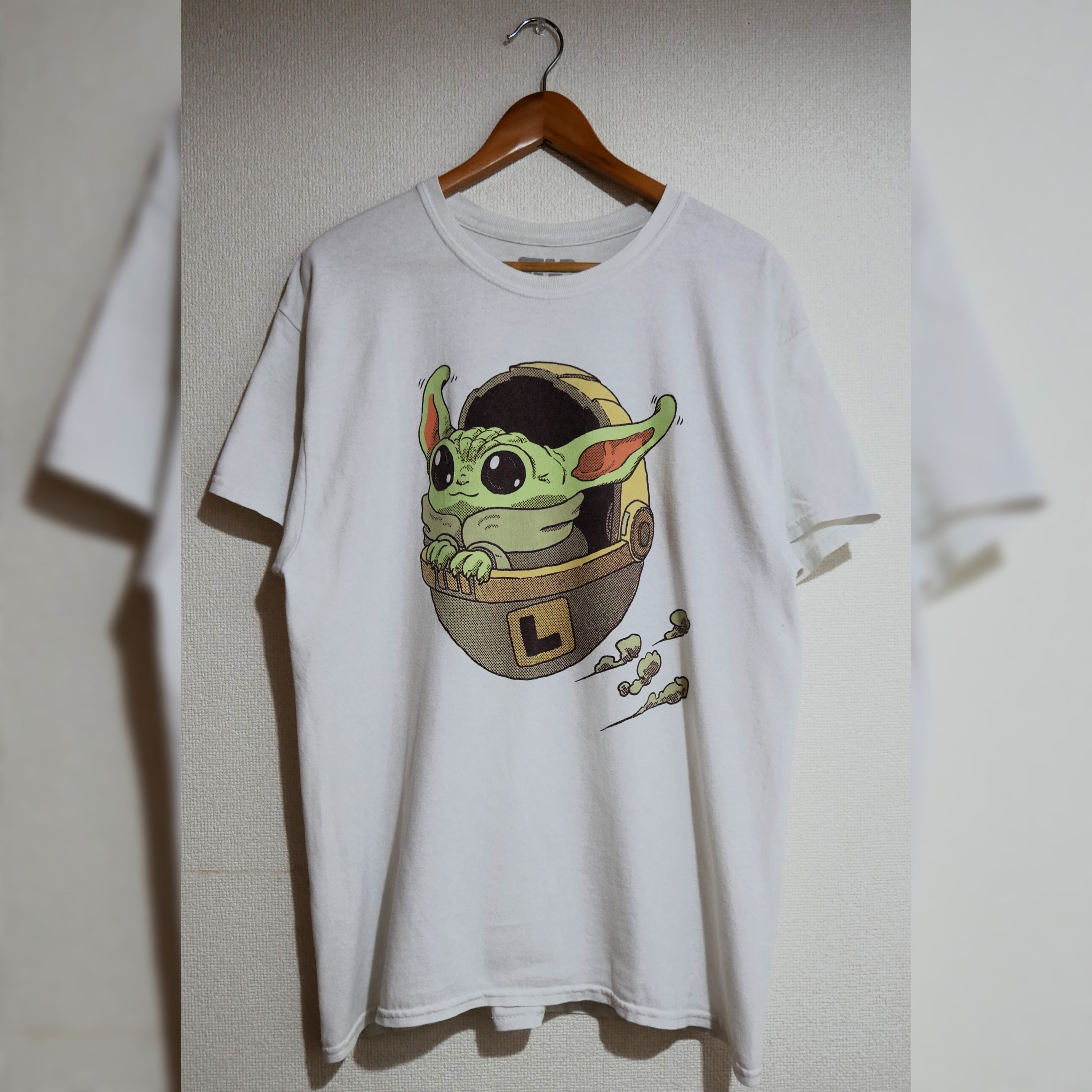 【L】グローグ ベビーヨーダ アニメタッチ ホワイトボディ Grogu BabyYoda White ボックスシルエット Tシャツ【古着】