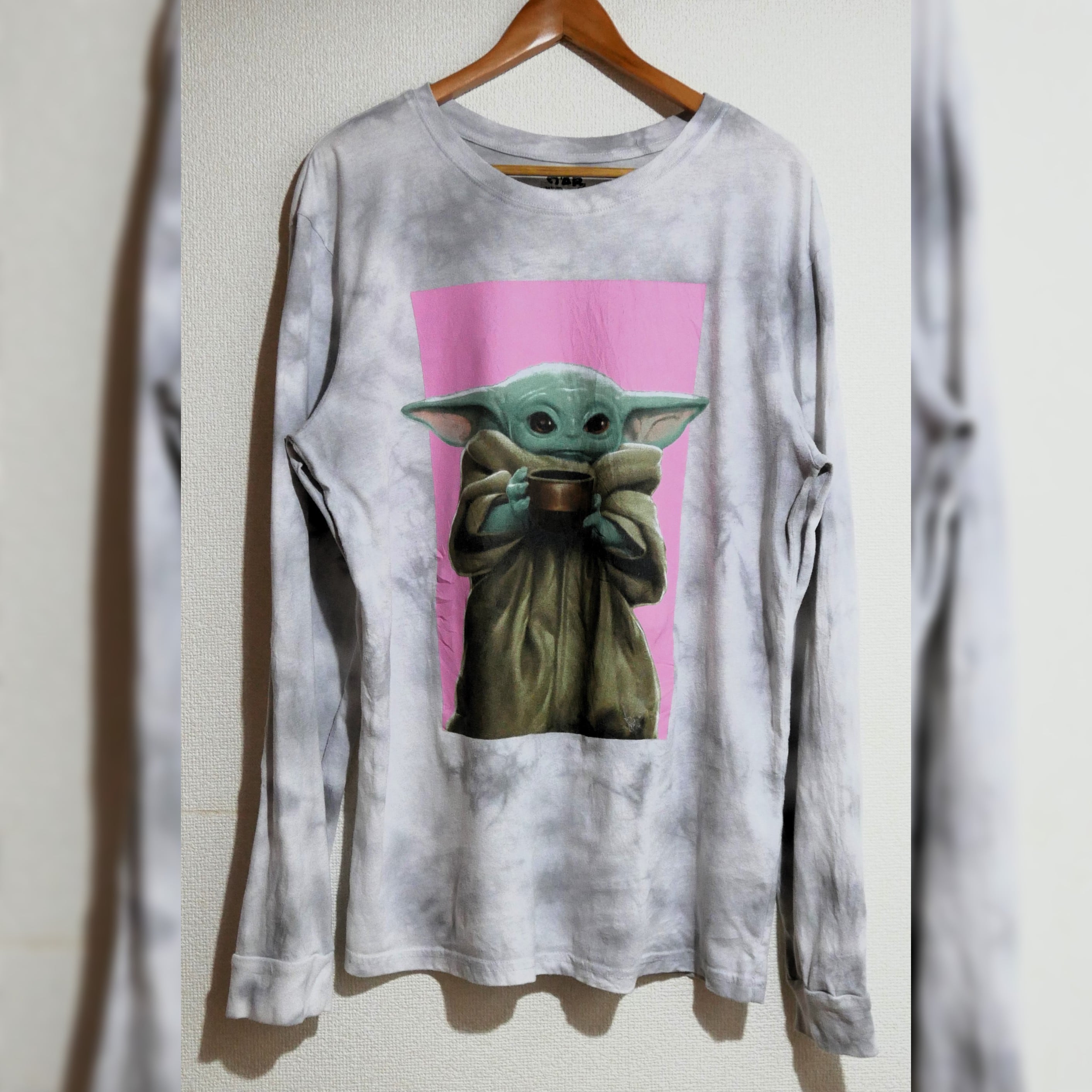 【M】スターウォーズ STARWARS グローグ ベビーヨーダ Grogu Baby Yoda LongSleeve マンダロリアン The Mandalorian ロングスリーブ 長袖 ロンT Tシャツ【古着】